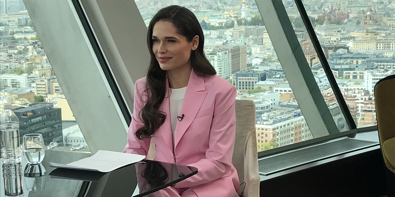 Галерист Полина Аскери в костюмах VASSA&Co из коллекции SS 2022 и FW 2022-23 на съемках передачи "Selfmade" для LIS CHANNEL