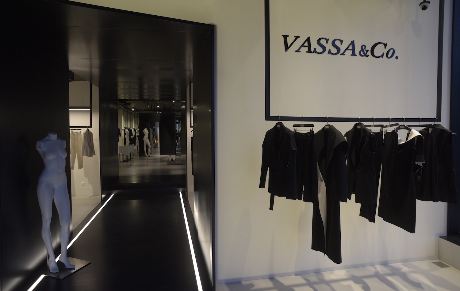 Пространство магазина, созданное известным архитектором Вадимом Грековым - это настоящий артобъект, напоминающий галерею современного искусства, при этом четко угадывается стиль бренда VASSA&Co.