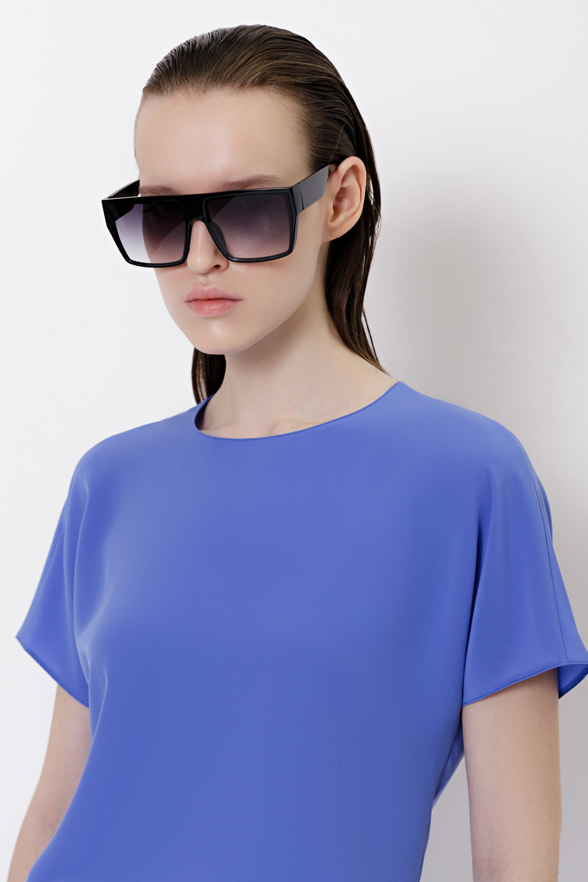 Базовая модель блузки приталенного кроя с округлой горловиной и спущенной линией плеча. Выполнена из легкой воздушной ткани. Блузка хорошо впишется в образы с жакетами, юбками, брюками или шортами. Изделие доступно в трех оттенках.