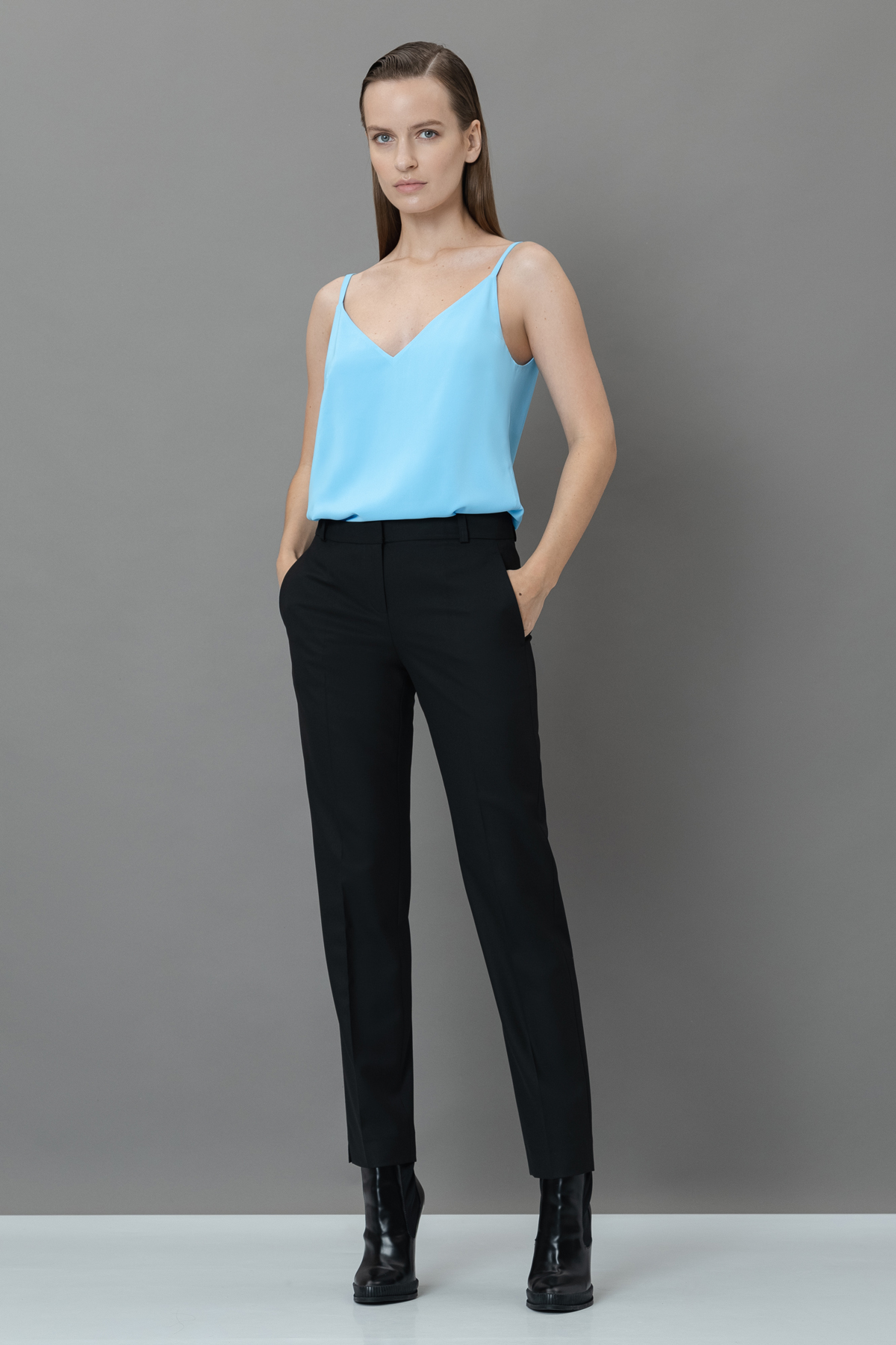 Топ бельевого стиля в голубом оттенке. Модель удачно впишется как в повседненвные, так и в вечерние комплекты. Свободная посадка, тонкие регулируемые бретели добавляют образу женственности.