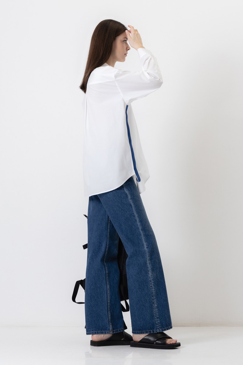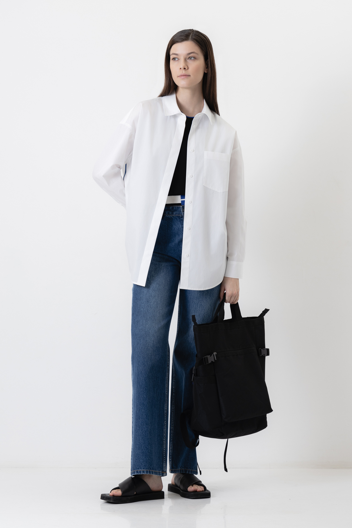 Рубашка с отложным воротником и длинным рукавом и накладным карманом, дополнена контрастной полоской по бокам. Пуговицы в тон спрятаны под дополнительной планкой. Изделие подходит для стильных повседневных образов. Рубашка представлена в двух оттенках.