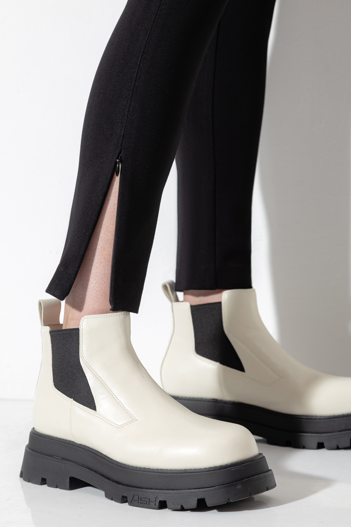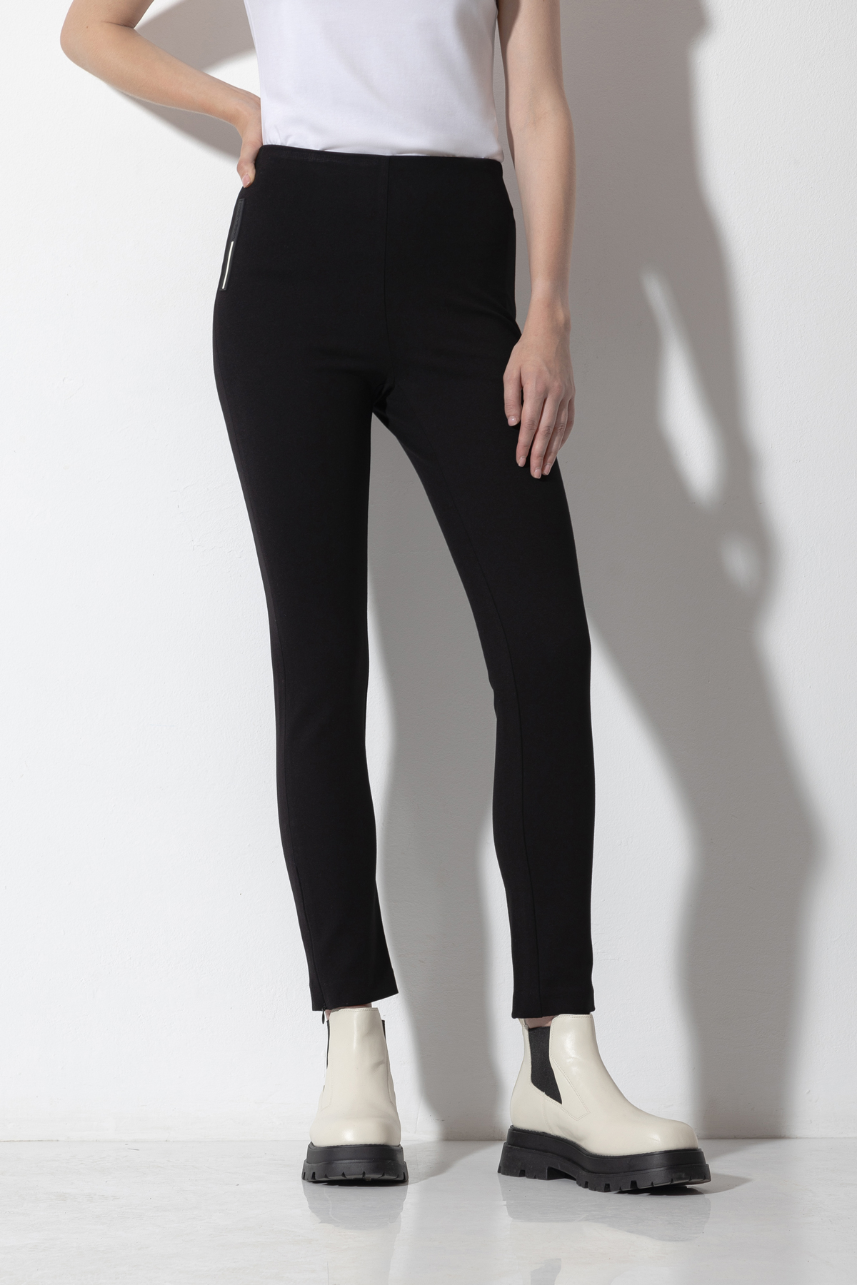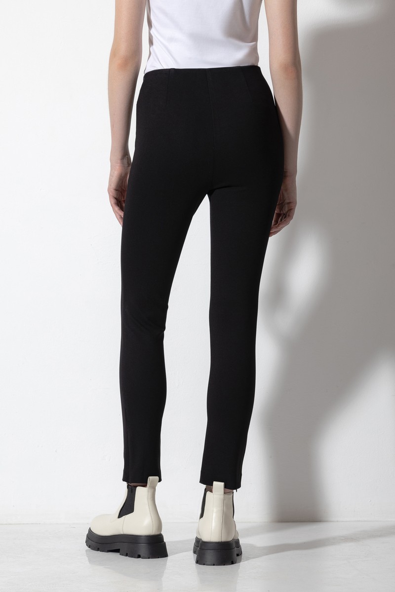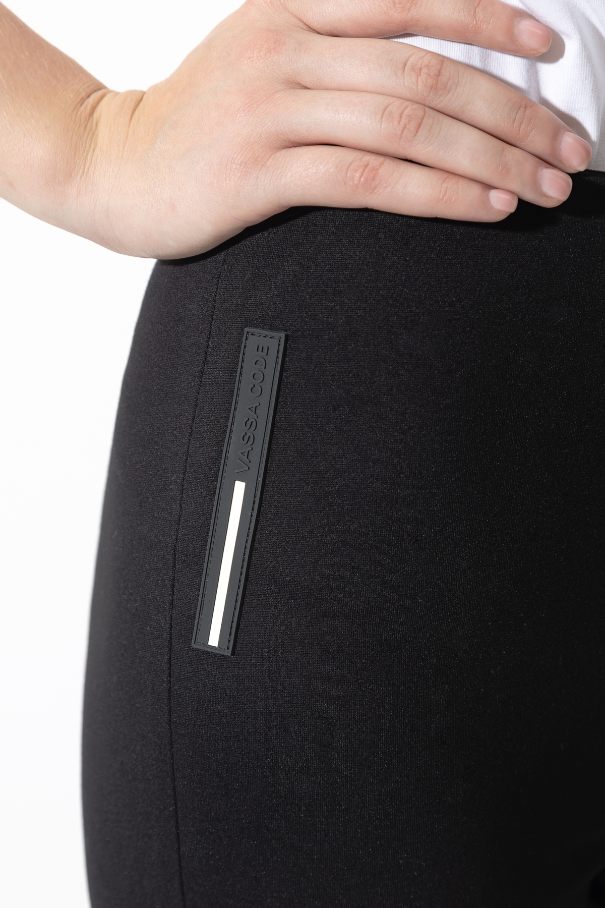 Брюки прилегающего силуэта из смесовой ткани с добавлением вискозы. Модель в длине 7/8 дополнена логотипом и молниями внизу штанин.