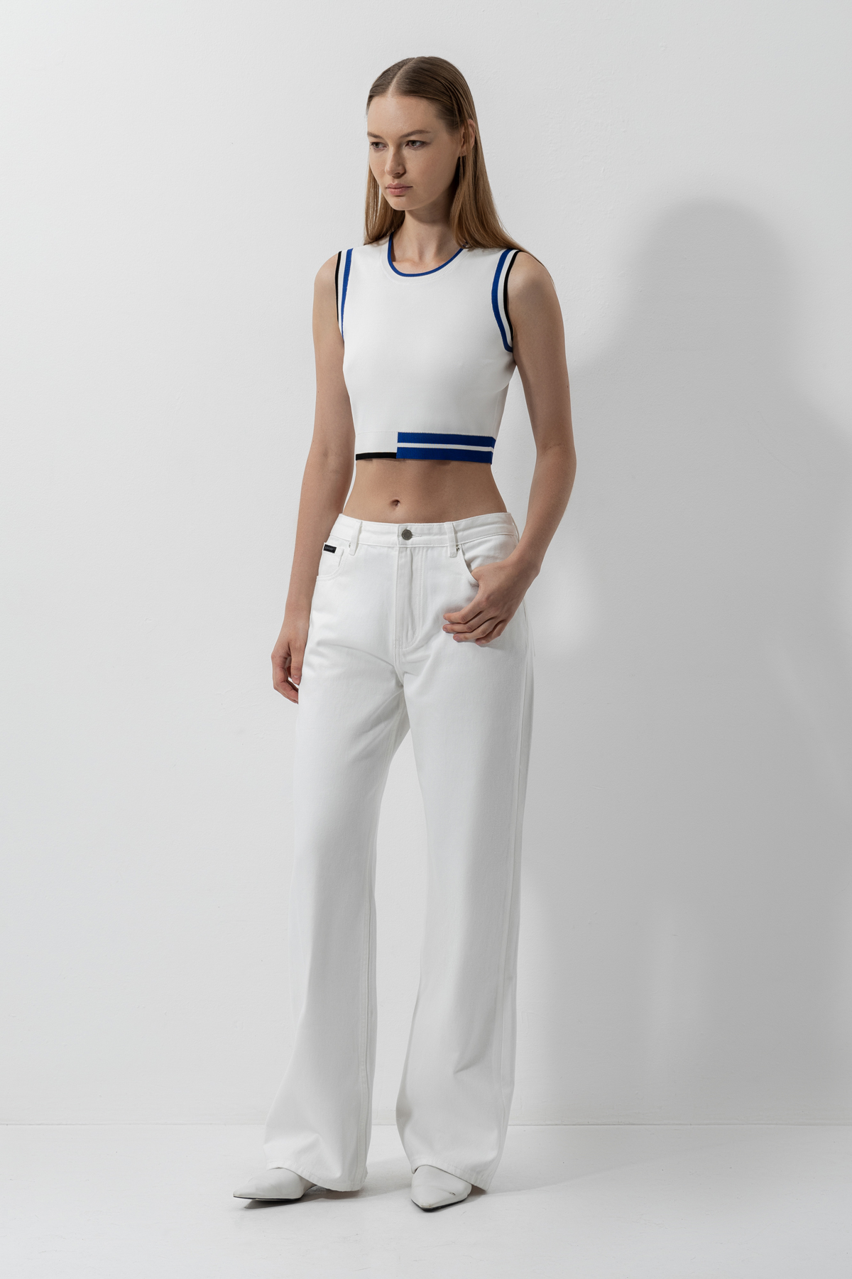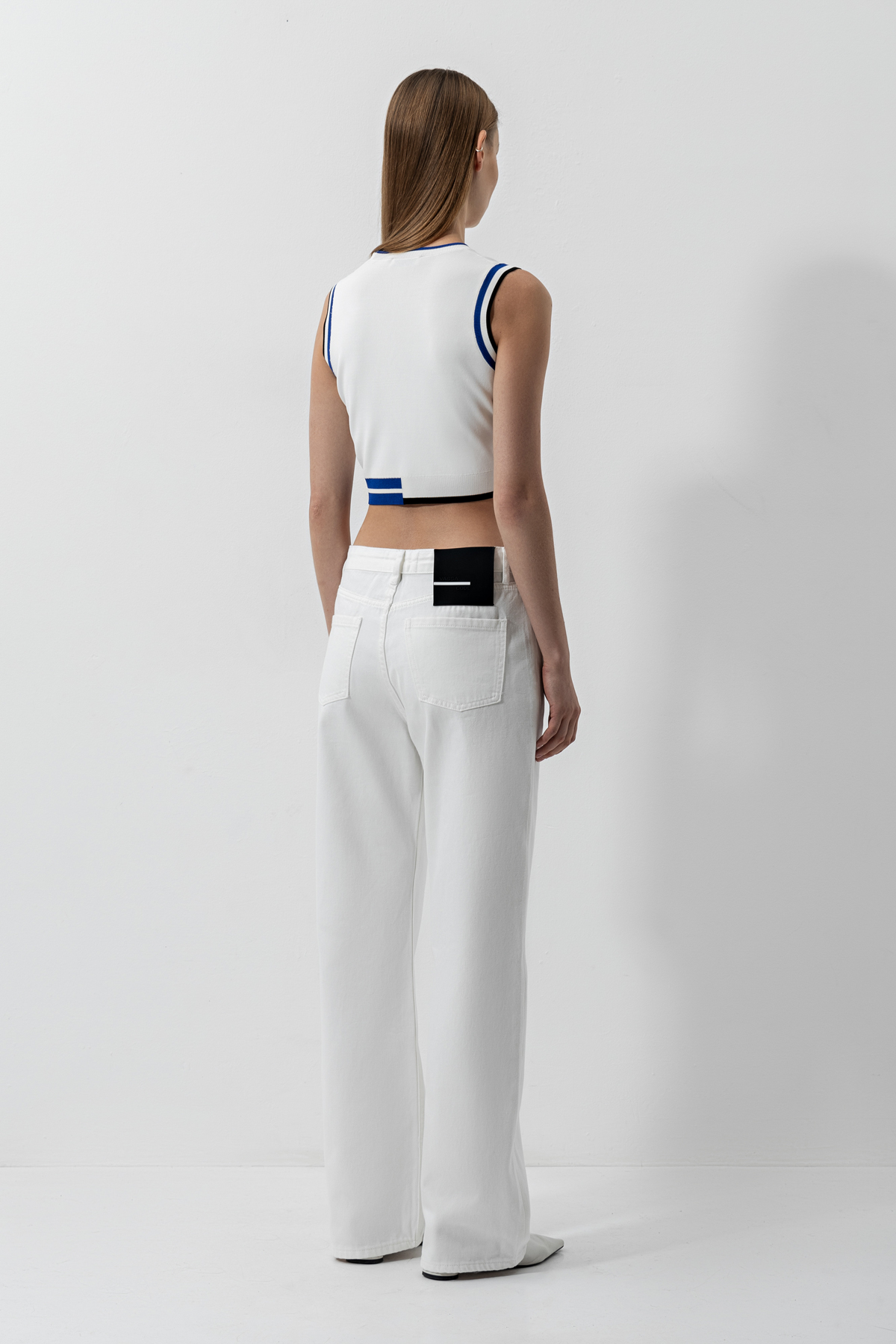 Широкие джинсы с низкой посадкой выполнены из плотного фактурного денима. Модель дополнена карманами. Мягкий пояс со шлевками позволяет носить джинсы с ремнем или без него. Деликатный клеш от колена визуально делает силуэт более гармоничным. Джинсы хорошо впишутся в образы с объемными футболками, облегающими топами и джемперами.