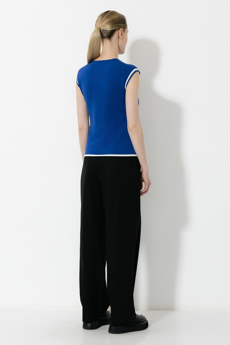 Джемпер из мягкого трикотажа приталенного кроя. Детали: круглый вырез и цельнокроеный короткий рукав. Универсальная модель дополнит образ с юбками, брюками или жакетами. Изделие доступно в двух оттенках.