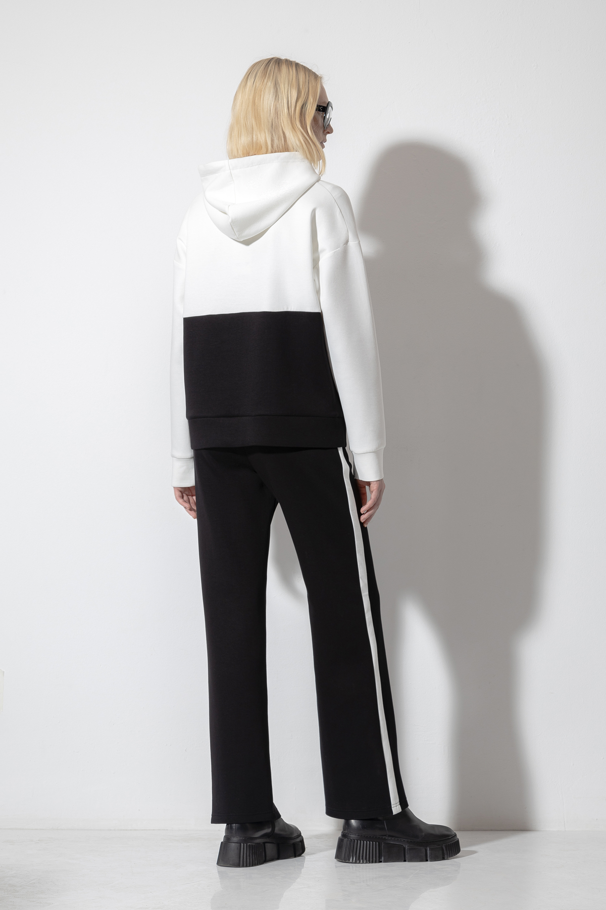 Базовая толстовка из смесовой ткани с добавлением хлопка. с контрастными элементами. Модель прямого кроя дополнена удобным капюшоном с кулиской, эластичной резинкой по низу изделия и контрастными вставками.