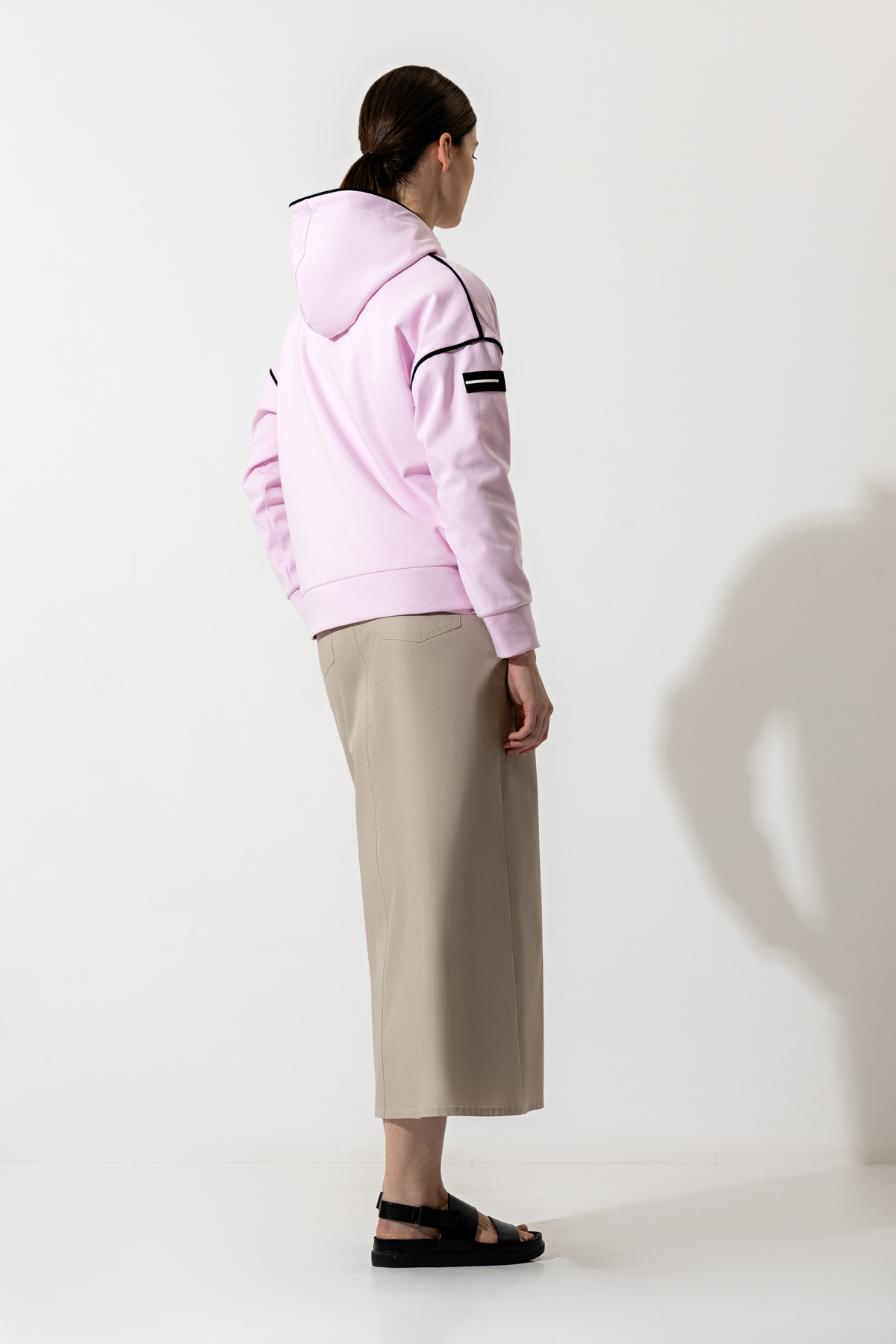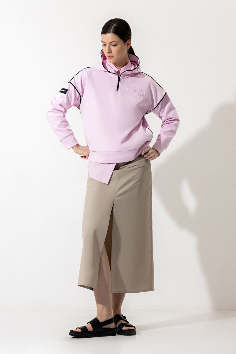 Белый укороченный свитшот свободного кроя. Изделие дополнено манжетами на нижнем крае, рукавах и горловине. Акцентная деталь свитшота - контрастная окантовка и объемный логотип в тон. Для создания повседневного многослойного образа сочетайте модель с юбкой и рубашкой из нашей коллекции.