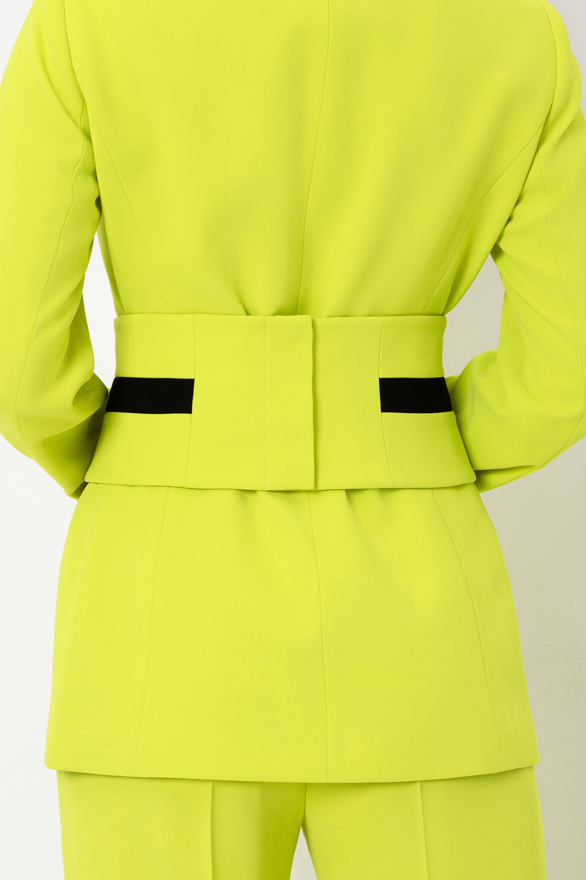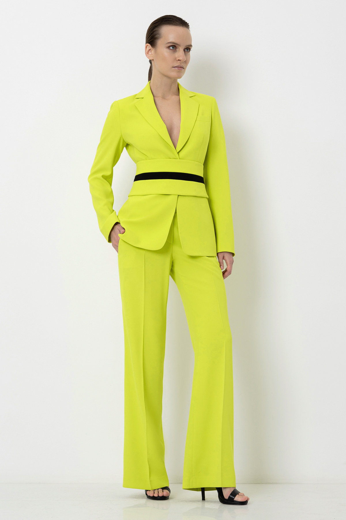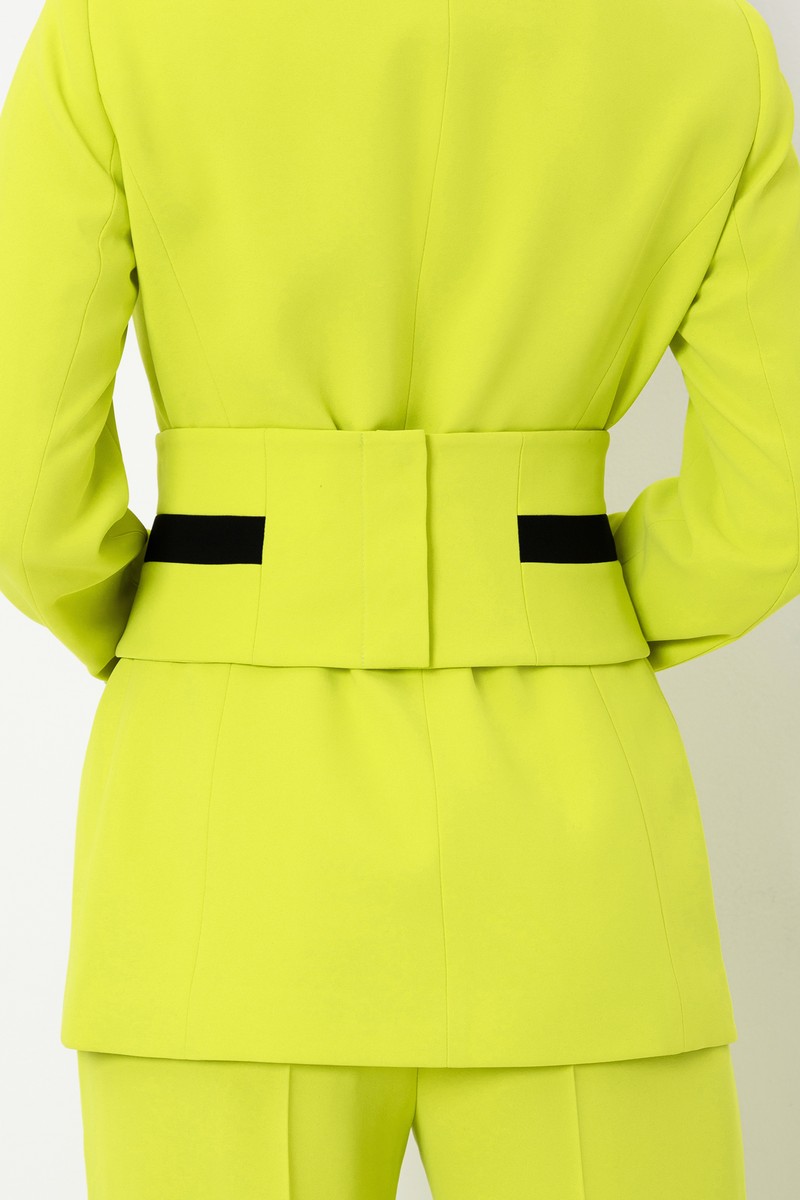 Акцентный пояс из плотной смесовой ткани с добавлением вискозы и хлопка. Детали: контрастная отделка пояса.