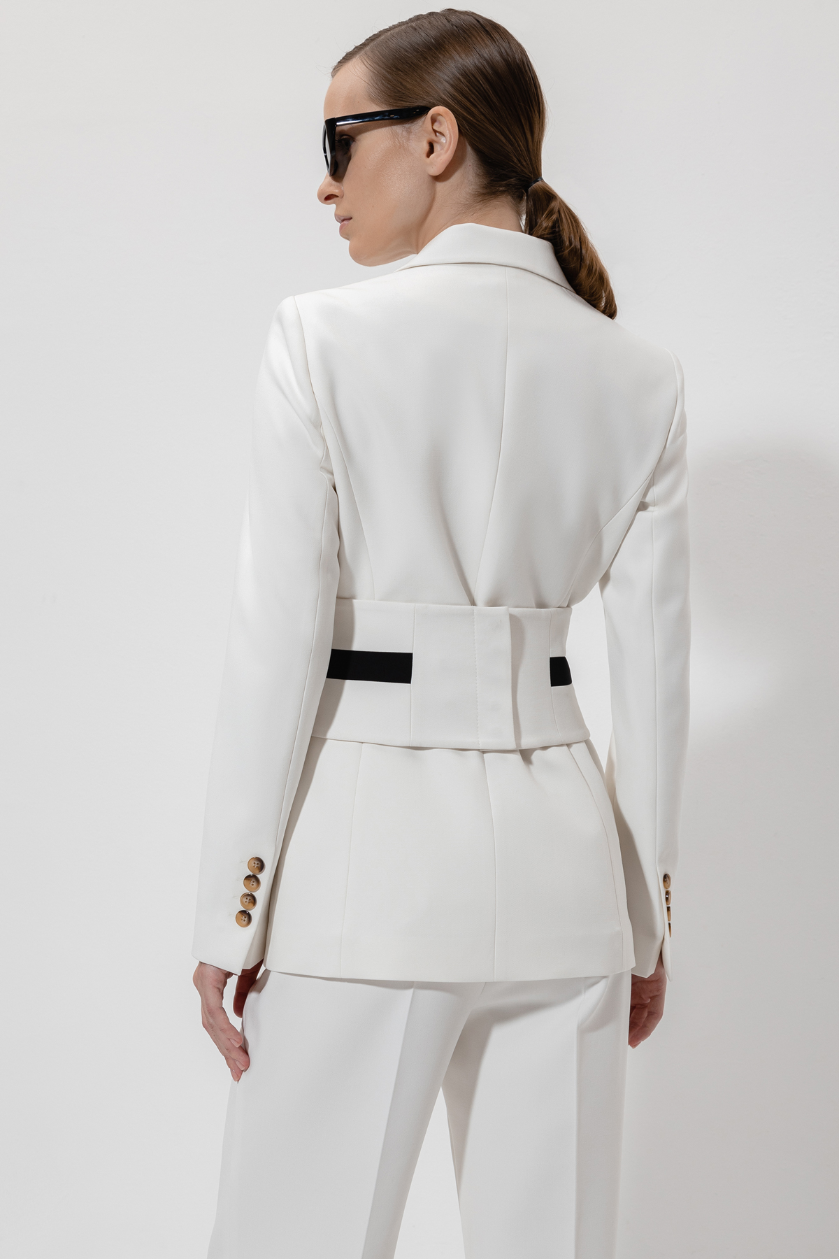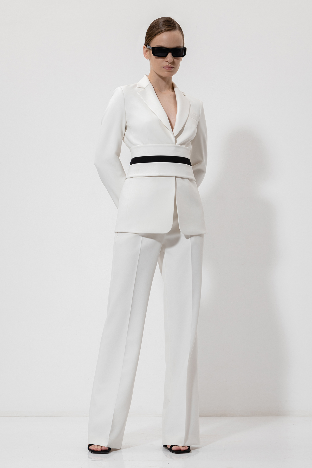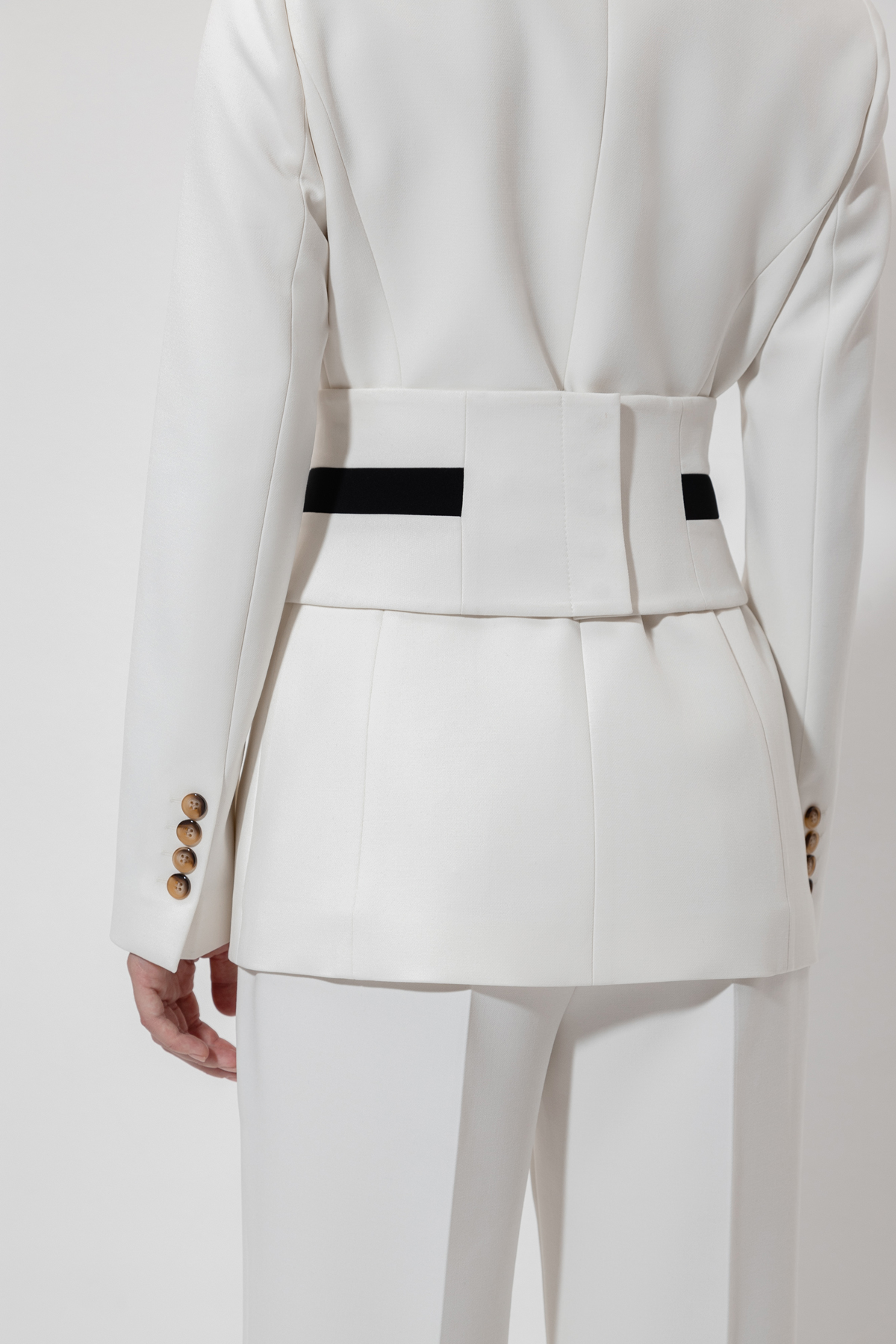 Акцентный пояс из плотной смесовой ткани с добавлением вискозы и хлопка. Детали: контрастная отделка пояса.