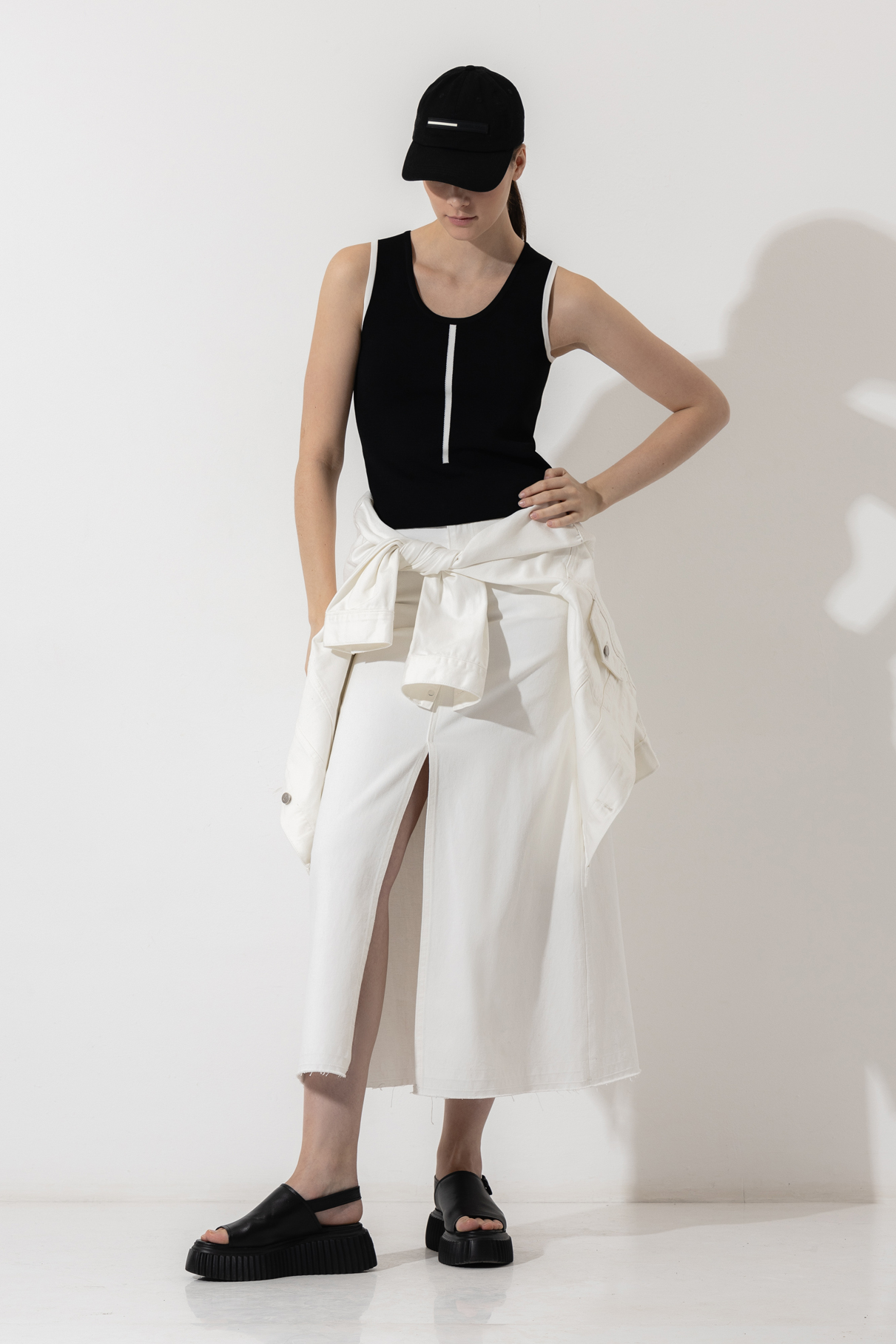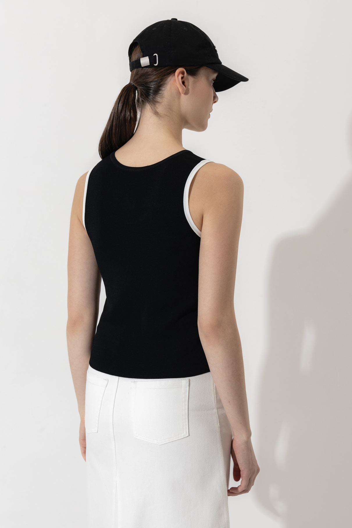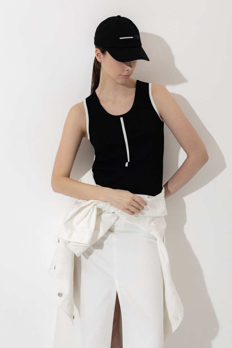 Черный топ из смесовой ткани с добавлением вискозы - универсальное дополнение летних casual-образов. Мягкий и плотный трикотаж из вискозы отлично дышит, а добавление искусственных волокон позволяет сделать материал более долговечным и упругим. Сочетайте топ с юбкой, джинсовкой и кепкой из нашей коллекции.