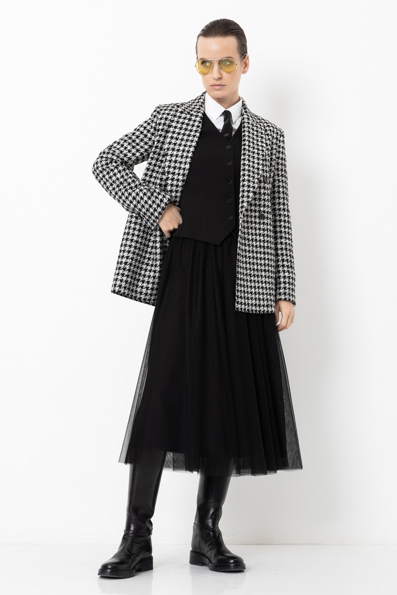 - модели из экокожи, твида, льна, шерстяной ткани, хлопка;